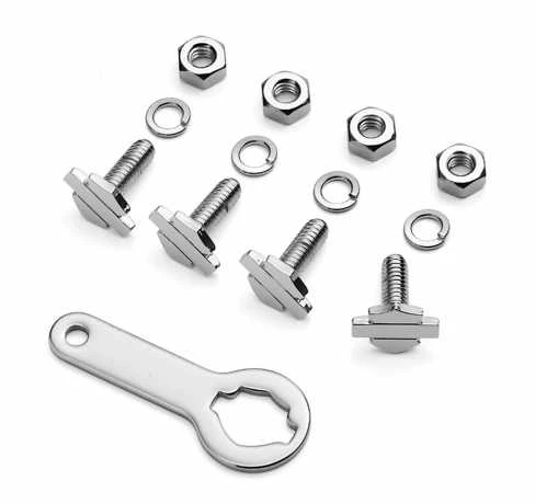 - Die Schrauben werden mit einem speziellen Schraubenschlüssel in Form des Bar & Shield Logos eingebaut, wodurch sich die Gefahr eines Diebstahls des Nummernschilds verringert