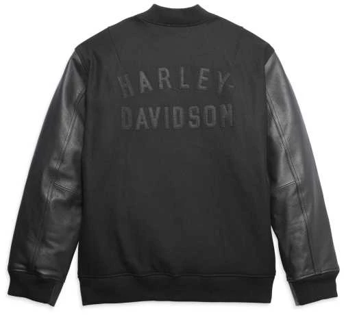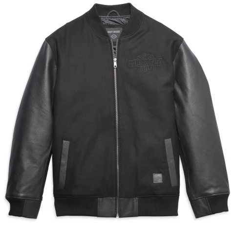 Die Harley Varsity Jacket ist eine Neuinterpretation des School Spirit Styles für Fans der offenen Straße. Sie ist in einer traditionellen und einer schmalen Passform erhältlich und besteht aus schwerem Leder und einer Poly/Wollmischung, gefüllt und gefüttert für kuschelige Wärme. Raglanärmel, Bündchen und Taschenbesatz aus Leder sorgen für einen stilvollen Kontrast. Klassisches Branding mit unserem ikonischen Logo auf der Vorderseite und unserem geschwungenen Logoschriftzug auf dem Rücken.