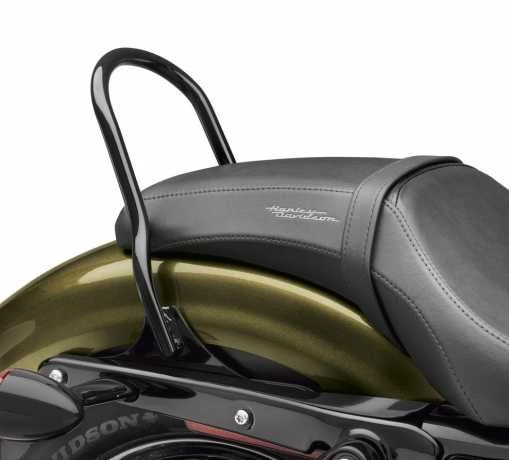 - Der schwarzglänzende Bügel aus Rundrohr sorgt an einem mit einem Solositz ausgestatteten Bike für einen schlichten Bobber-Look und bietet dem Sozius eine perfekte Gesäßstütze, wenn das Bike mit einer Low Profile Doppelsitzbank ausgestattet ist