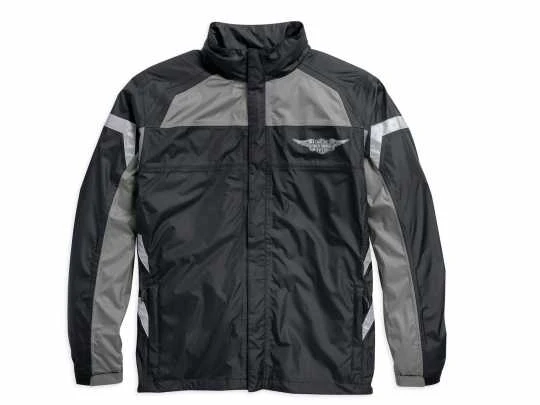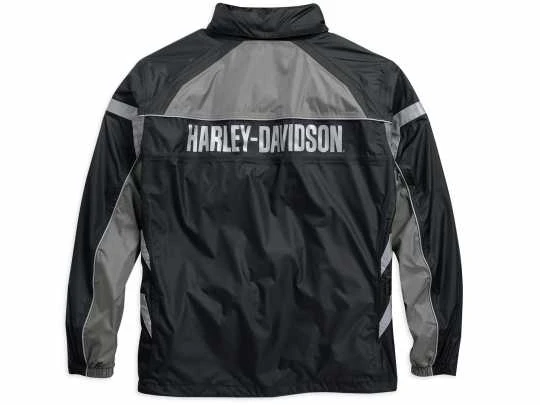 Mit diesem Original Harley-Davidson zweiteiligen Regenkombi für Herren in schwarz & grau bleiben Sie auch bei starkem Regen trocken. Der Kombi kommt inklusive praktischer Aufbewahrungstasche.