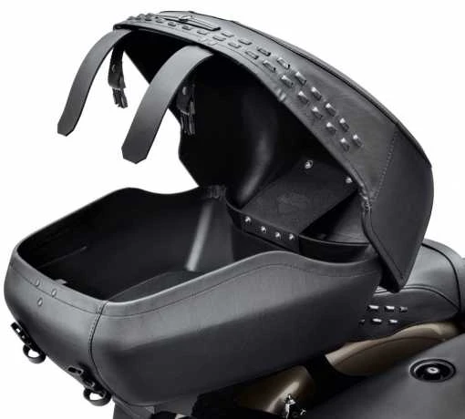 Dieses Tour-Pak Gepäcksystem von Harley-Davidson bietet Ihnen die Möglichkeit, jegliche Regenausrüstung, Kleidung und Campingausrüstung sowie Einkäufe zu verstauen. Zusätzlich kann dieses System in Sekundenschnelle mit dem Gepäckträger entfernt werden. Der harte Koffer bietet Platz für einen Integralhelm oder zwei Jethelme.